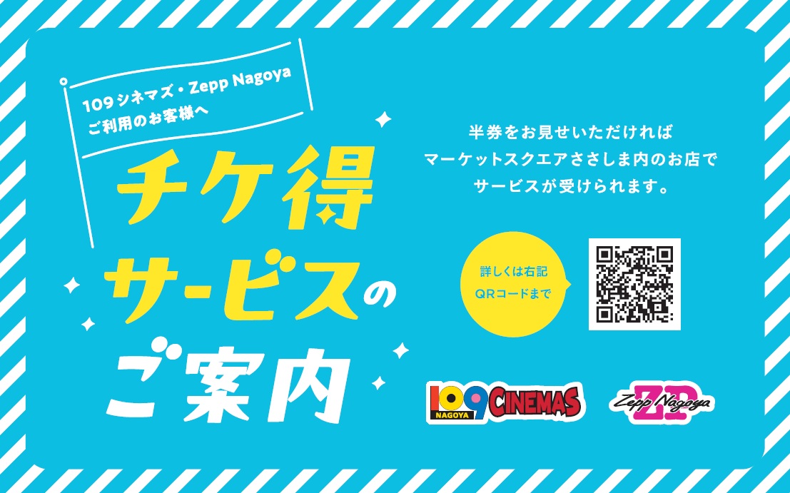 「109シネマズ名古屋」または「Zepp Nagoya」の当日券(電子もOK)をお持ちの方に、
