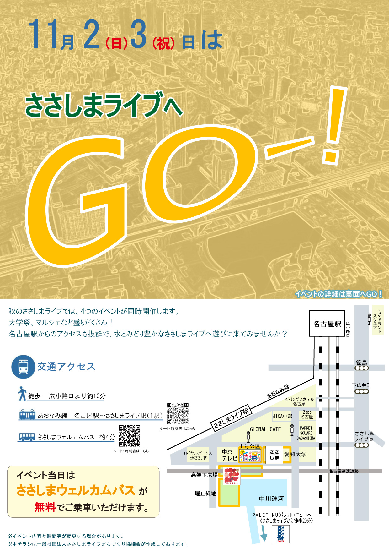 11月2日(日)・3日(月祝)は、ささしまライブなどで4つのイベントが同時開催。